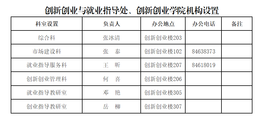 创新创业与就业指导处、创新创业学院机构设置