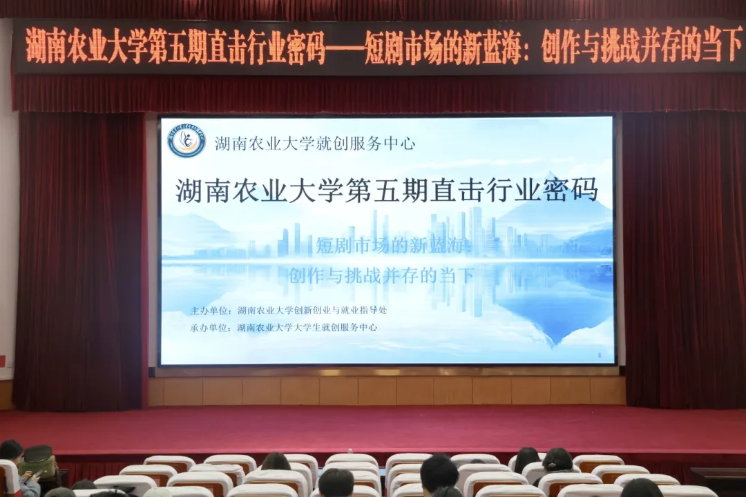 2025年3月28日直击行业密码系列活动第五期——短剧市场的新蓝海:创作与挑战并存的当下在修业讲堂完美落幕! 本次活动由湖南农业大学创新创业与就业指导处主办、湖南农业大学大学生就创服务中心承办。出席本次活动的嘉宾是深耕于文学世界、佳作不断的南风语老师。