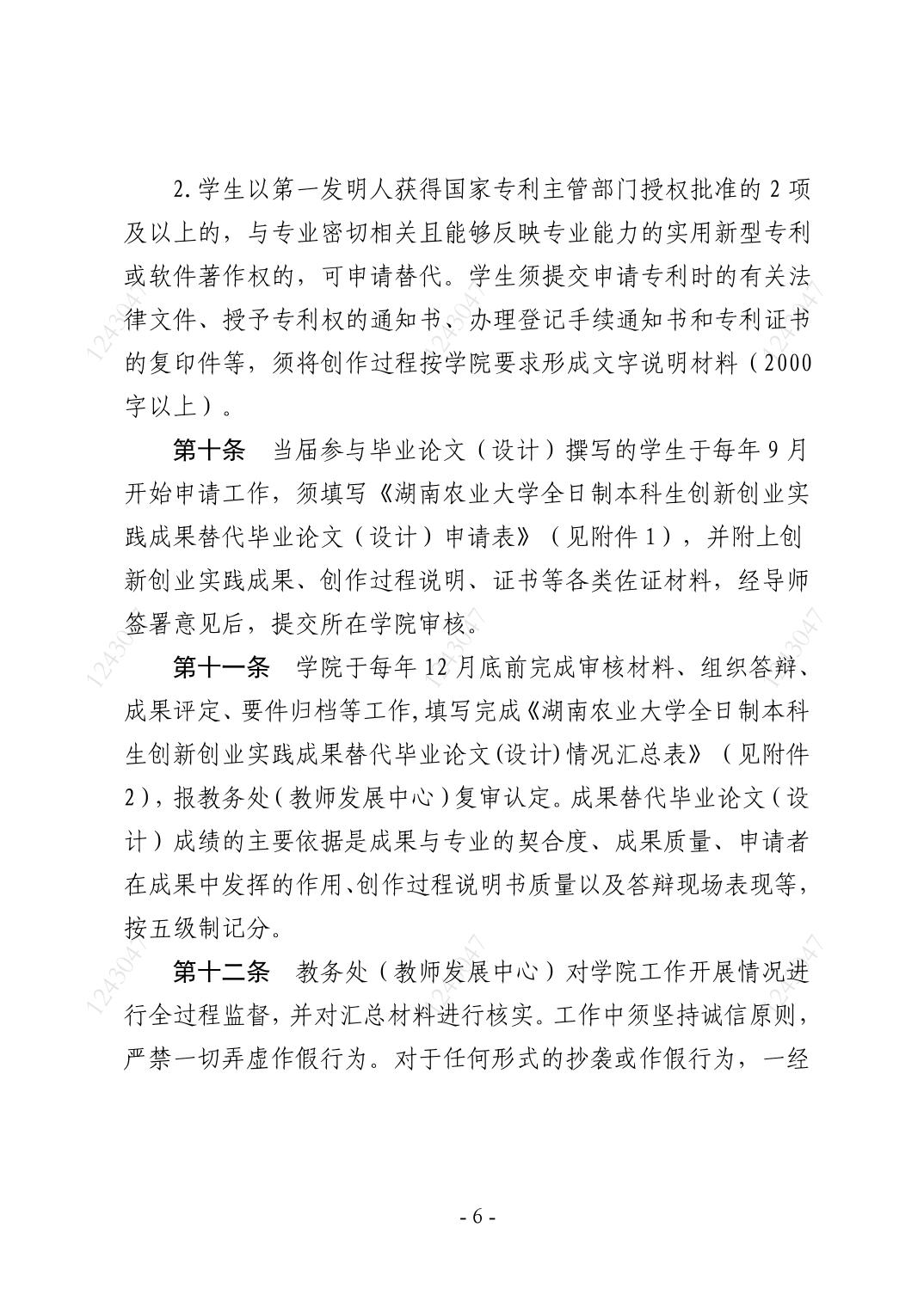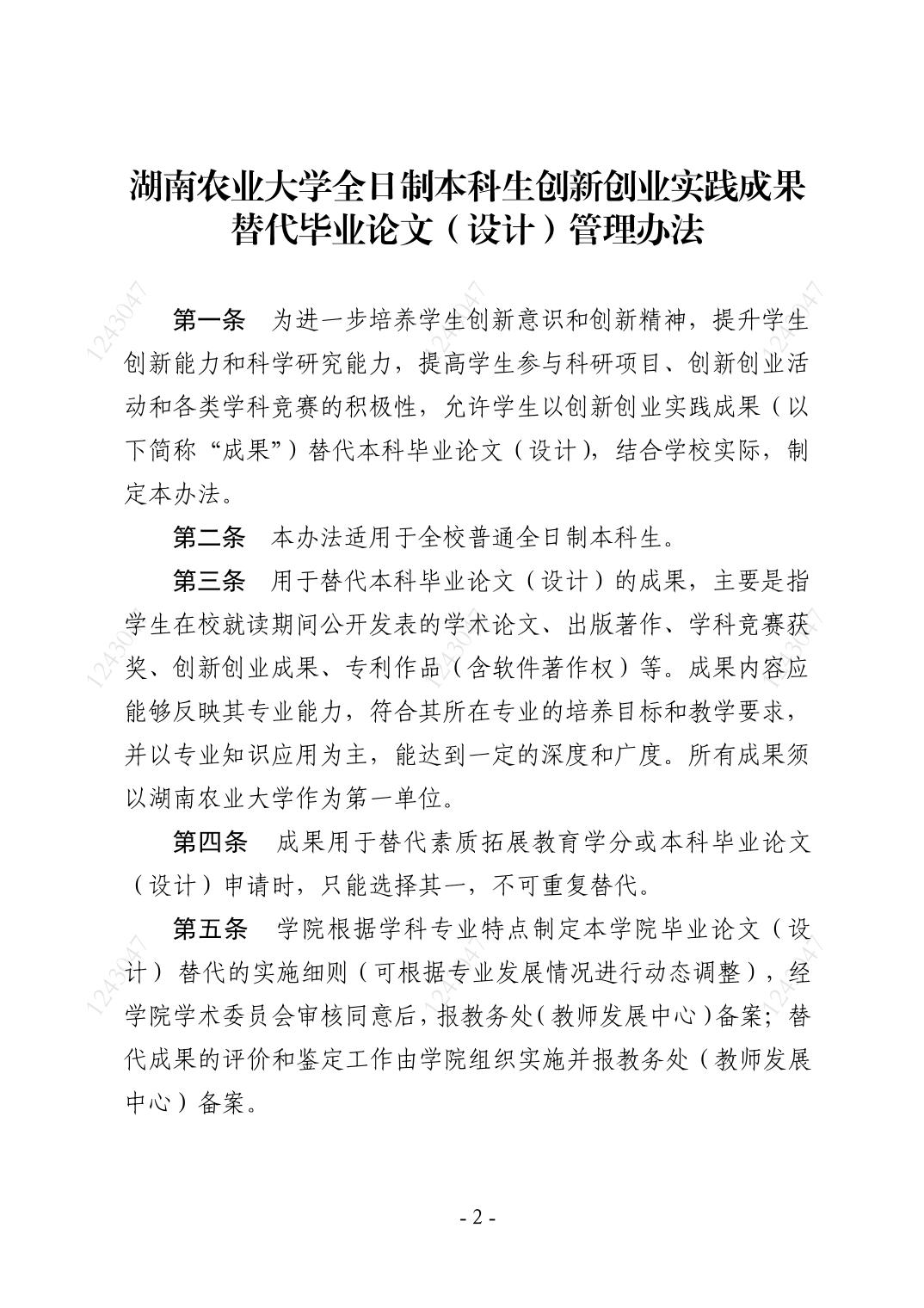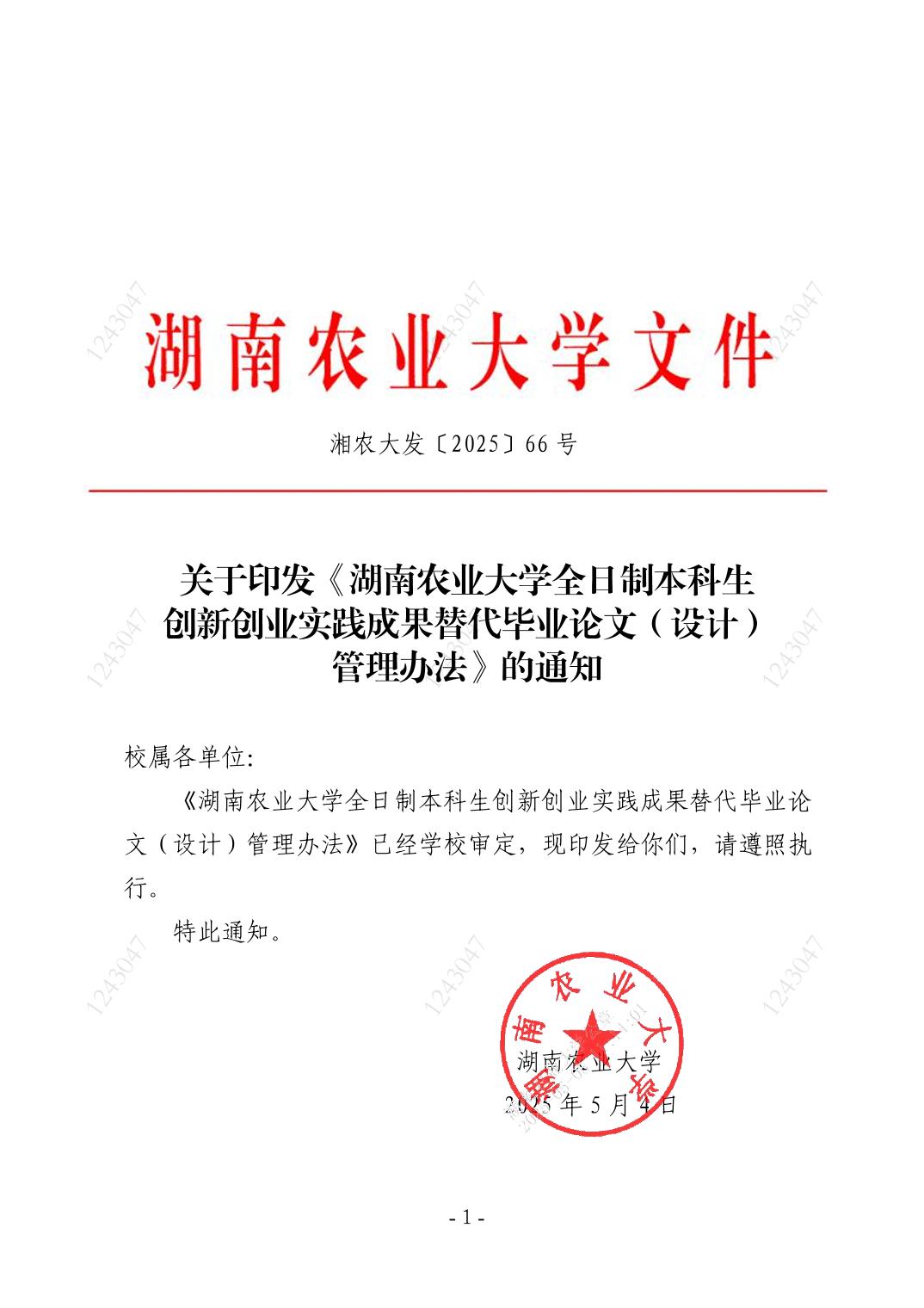 关于印发《湖南农业大学全日制本科生创新创业实践成果替代毕业论文(设计)管理办法》的通知