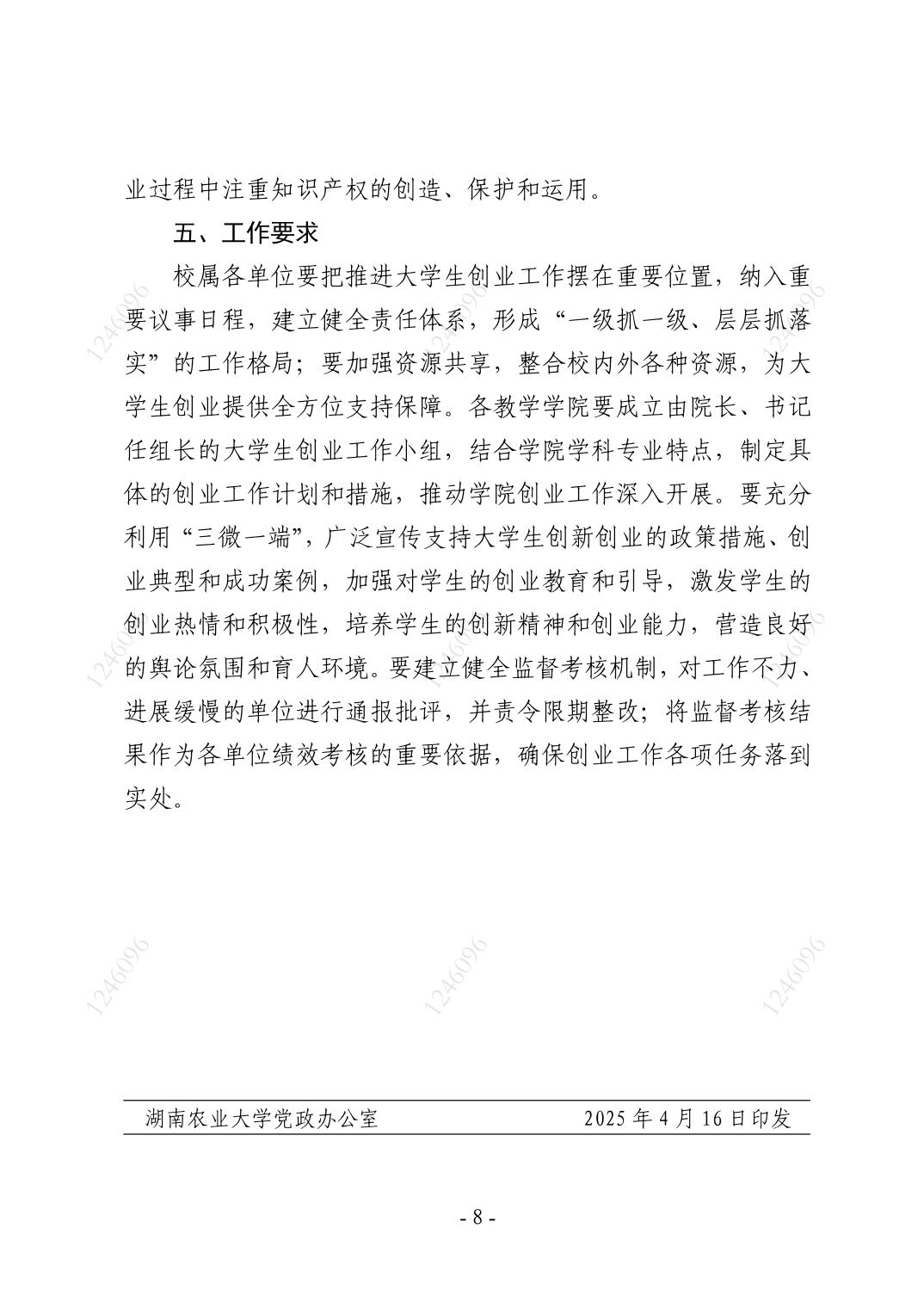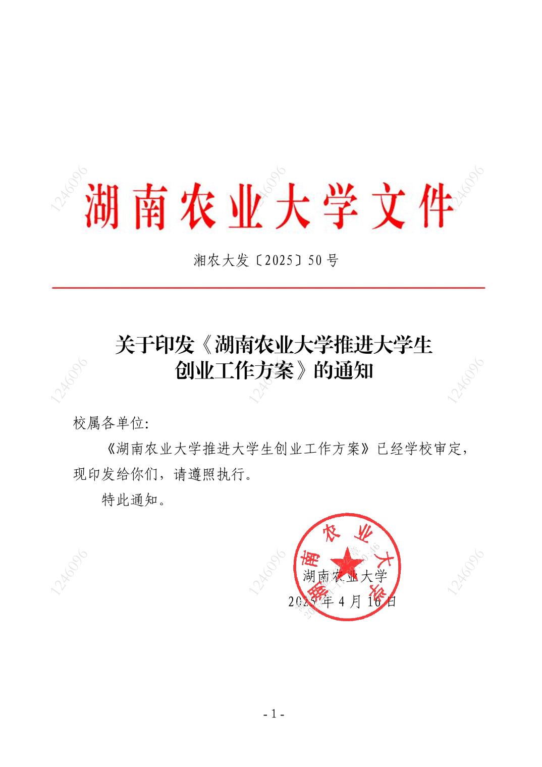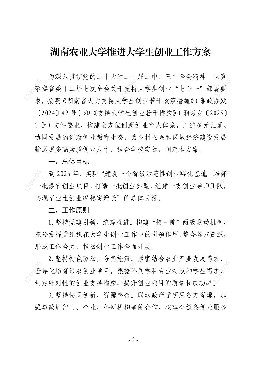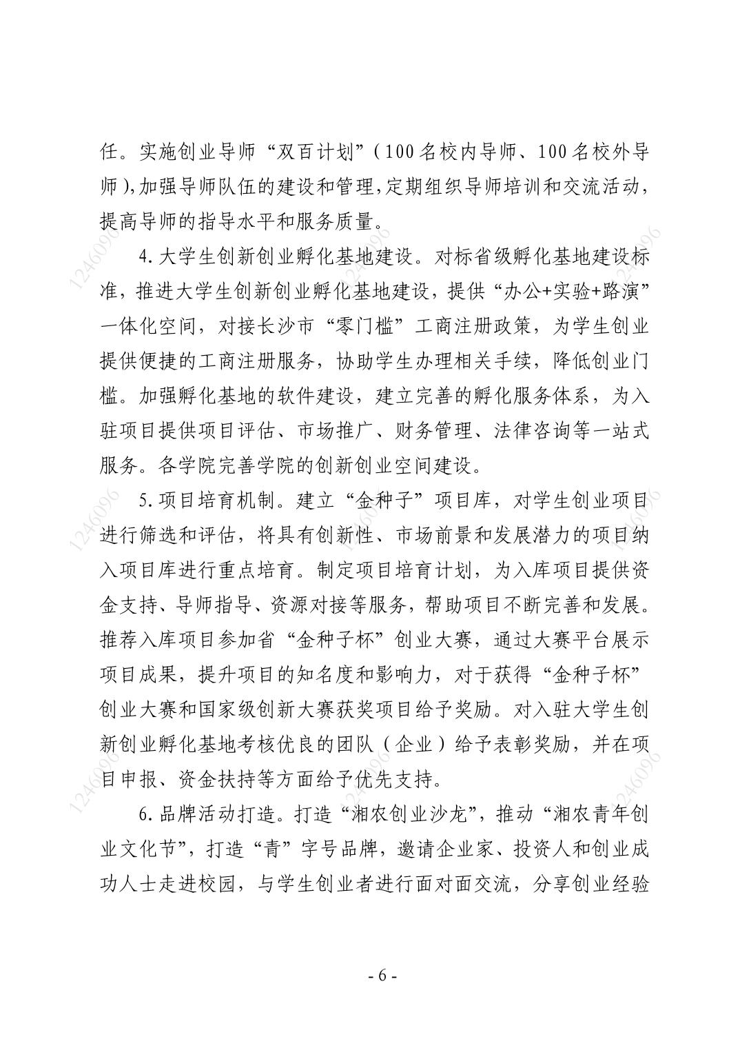 关于印发《湖南农业大学推进大学生创业工作方案》...